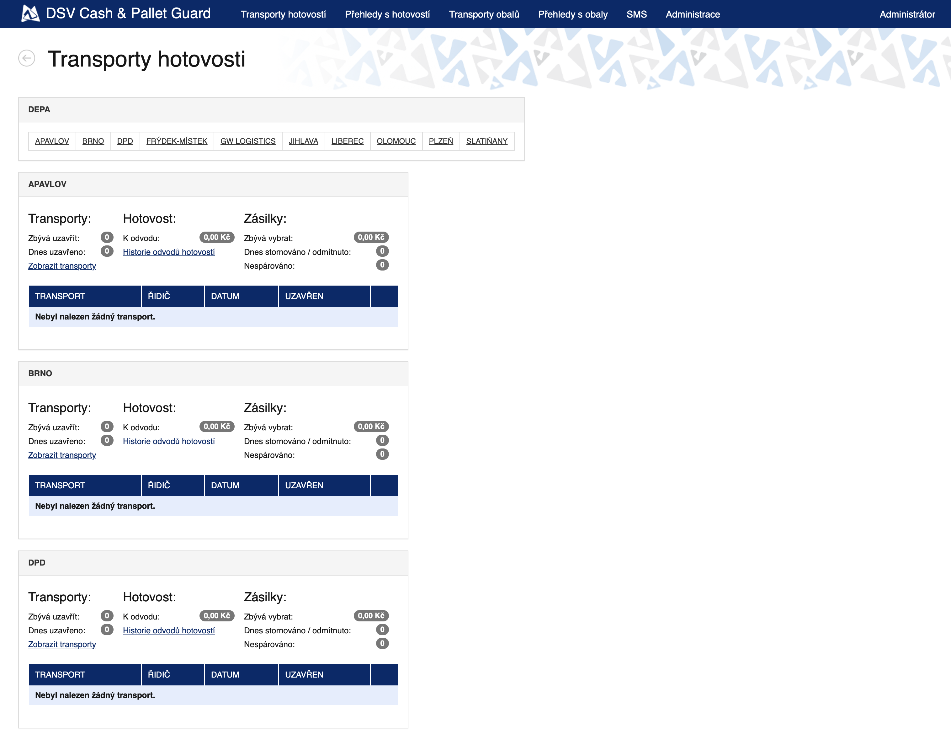 Aplikace pro řízení a kontrolu hotovostních operací při rozvozu a svozu zásilek. V roce 2015 byla rozšířena o agendu pro sledování vratných obalů (zejm. europalet), inkaso peněz vybraných z dobírek (od řidičů dodávek), paletové hospodářství, SMS notifikace o zásilkách. Provoz z Azure App Service.