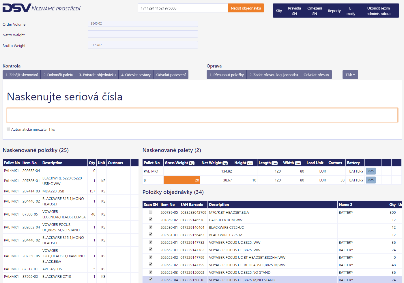 Aplikace pro podporu práce packerů v logistickém skladu. Zjednodušuje proces nakládky a zajišťuje, aby se do kamionů dostalo to, co tam má být a nic jiného. PWA aplikace optimalizovaná pro čtečku čárových kódů Zebra. Osvědčený model odděleného vývoje front-endu (React + MobX) a backendu (ASP.NET Core).